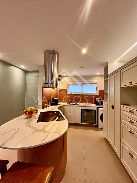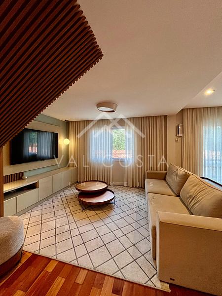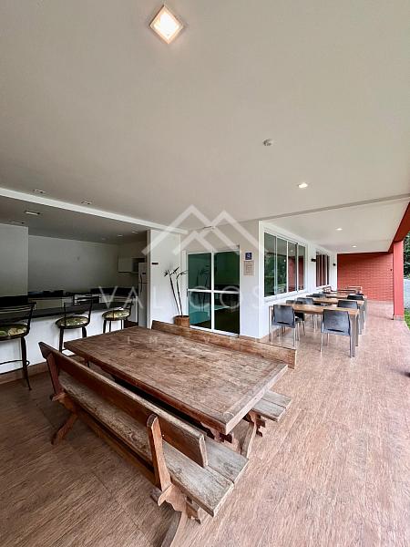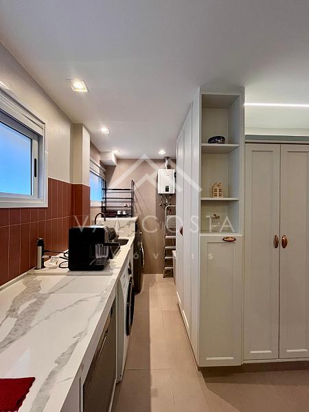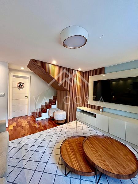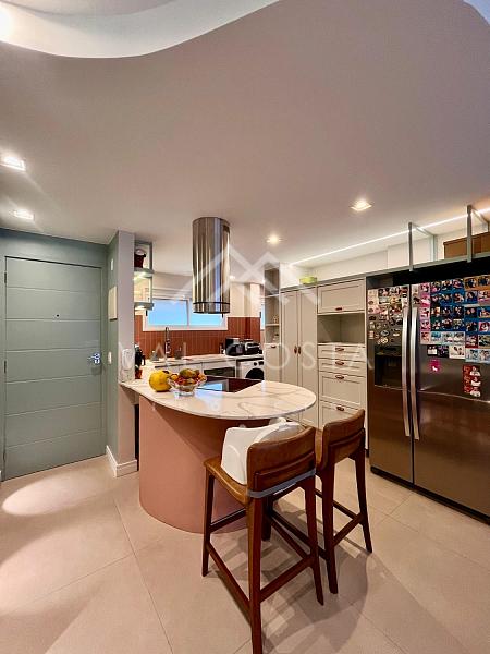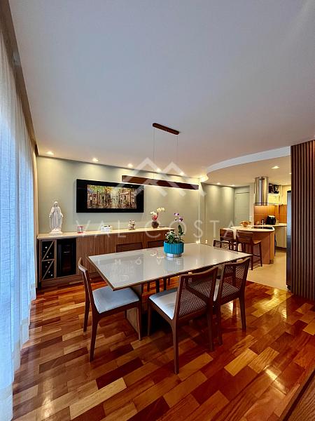 Com um design moderno e fino acabamento, o imóvel oferece uma experiência única de bem-estar. A cozinha americana, toda planejada com marcenaria de primeira, se integra perfeitamente à ampla sala de estar, dividida em dois ambientes acolhedores — o espaço ideal para reunir amigos e família. Da varanda, você aprecia a tranquilidade e o verde do condomínio, um verdadeiro refúgio urbano.