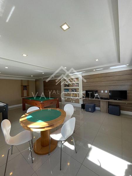 O condomínio dispõe de hall mobiliado, elevadores, portaria, câmera de segurança, piscina, salão de festas, churrasqueira, brinquedoteca, sauna, espaço gourmet e muito mais.