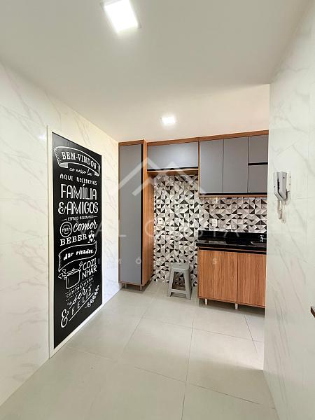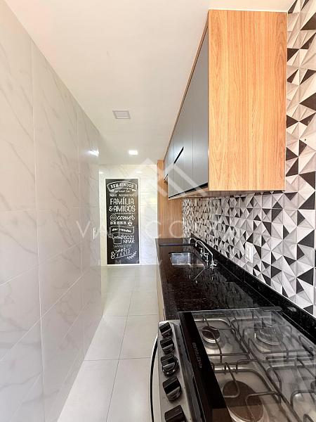 A cozinha, moderna e funcional, conta com armários planejados de excelente qualidade e integração fluida com a área de serviço. A dependência completa pode ser revertida em home office ou espaço de estudos, de acordo com sua necessidade.
