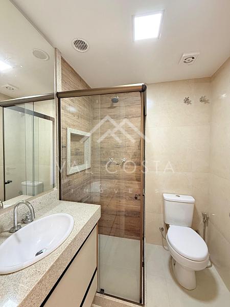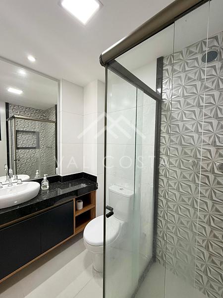 O amplo living, dividido em dois ambientes, exibe um projeto de iluminação embutida em gesso que valoriza o ambiente e cria uma atmosfera acolhedora. A varanda espaçosa convida a momentos de contemplação e bem-estar, com vista agradável e total privacidade.