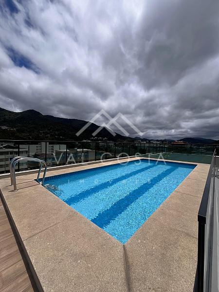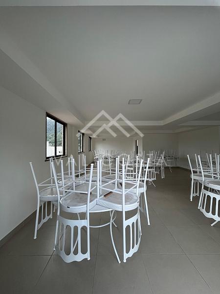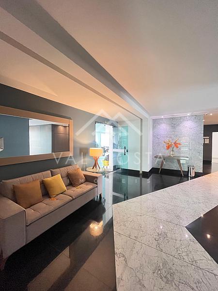 O condomínio oferece portaria 24 horas, elevador, hall finamente decorado, piscina, salão de jogos, sauna, academia e salão de festas.