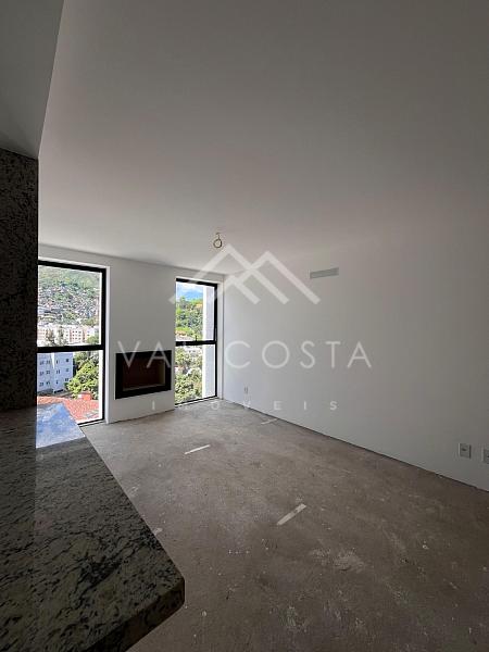 Ao entrar no apartamento, somos recebidos por uma aconchegante sala em dois ambientes, destacada por uma elegante lareira. A cozinha americana, integrada à área de serviço, proporciona praticidade e interação com a sala. O imóvel dispõe de dois quartos confortáveis e bem iluminados, um banheiro social e uma espaçosa suíte de casal. Tudo com excelente ventilação e iluminação natural.