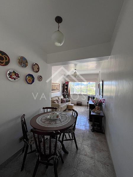 Este charmoso apartamento oferece uma sala espaçosa, dividida em dois ambientes, com uma bela vista para o Dedo de Deus e parte da Reta. A cozinha funcional conta com área de serviço e entrada independente, garantindo mais praticidade no dia a dia. A suíte é aconchegante, e o quarto regular compartilha a mesma vista privilegiada da sala.