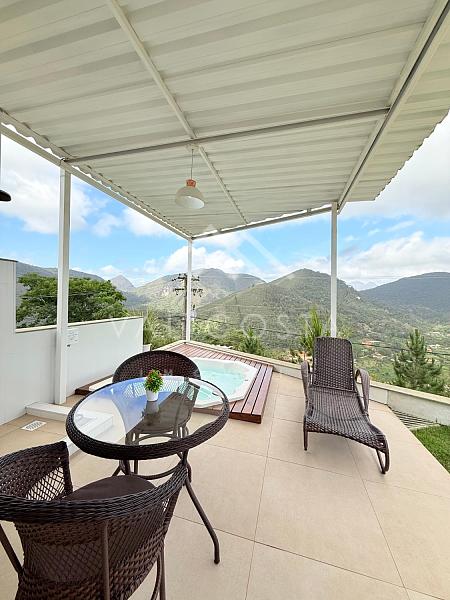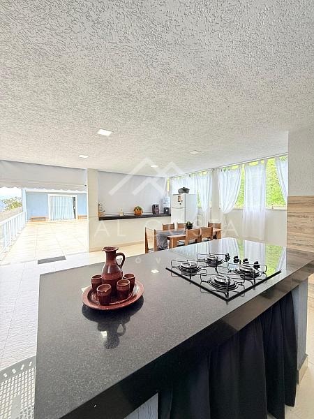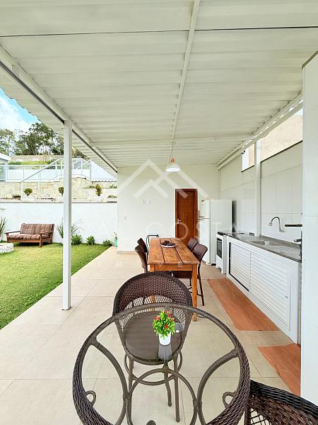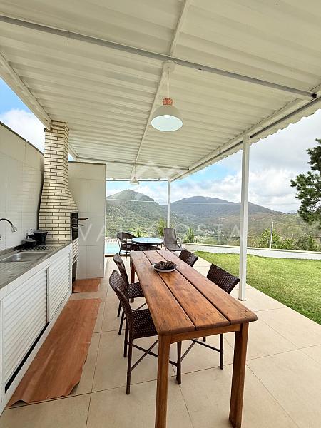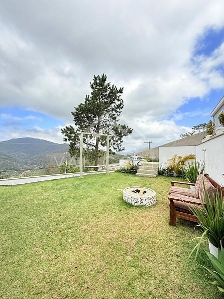 O jardim, com paisagismo caprichado, tem aquele balanço com vista para as montanhas — tipo de cenário que vira foto favorita no Instagram sem esforço. E ainda conta com garagem para até 5 carros.