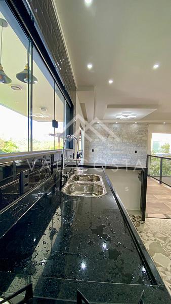 Não posso esquecer do living com lareira em dois ambientes, cozinha americana virada para sala de jantar e varanda com espaço gourmet com uma linda vista,