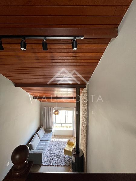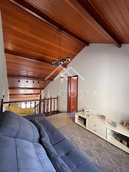 • Sala ampla em dois ambientes com lareira e pé-direito alto, proporcionando um ambiente aconchegante e sofisticado.