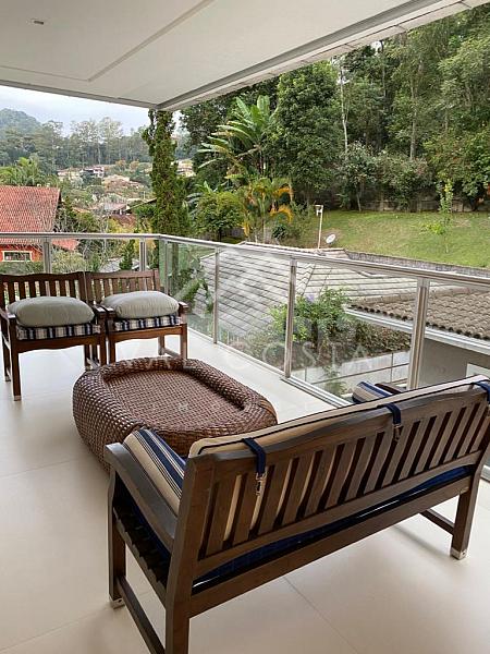 Casa Localizada em um dos condomínios mais prestigiados de Teresópolis-RJ, na serra, em um terreno plano, esta imponente residência oferece o que há de melhor em conforto, lazer e segurança. O condomínio, de altíssimo padrão, conta com uma estrutura completa: quadras de areia e grama, beach tennis, gazebo, academia de última geração, piscinas iluminadas para adultos e crianças, saunas, restaurante, além de segurança 24 horas. A casa principal é composta por 5 suítes, sendo a master um verdadeiro refúgio de luxo com dois closets individuais (masculino e feminino), banheira com hidromassagem, varanda, pias duplas e acabamentos em mármore de altíssima qualidade. Todas as áreas quentes possuem piso de taco de madeira, enquanto as áreas molhadas são revestidas com porcelanato Porto Belo de alta qualidade de extremo requinte. A ampla sala de estar pé direito duplo, dividida em dois ambientes, conta com lareira. Sala de cinema,. A cozinha é um espetáculo à parte, com bancada principal, armários planejados e acabamentos de altíssimo padrão. A casa é extremamente arejada e integra-se harmoniosamente ao paisagismo do jardim, que inclui um lago artificial para peixes. A área gourmet anexa é ideal para receber convidados, equipada com forno a lenha, churrasqueira e um espaço generoso para festas e mais banheiro dois quartos, No piso superior desta área, há ainda uma ampla suíte e um roupeiro, proporcionando conforto e praticidade. A lavanderia completa ao anexo, garantindo funcionalidade. A garagem coberta acomoda até 4 veículos, além de 10 vagas descobertas dentro da propriedade. Esta residência é um verdadeiro espetáculo, com cada detalhe pensado para oferecer uma experiência de vida única. Venha conhecer de perto esta oportunidade de viver em uma casa de excelência incomparável, oferecida exclusivamente pela Val Costa Imóveis. E lembre-se: Não existe melhor lugar para se estar do que no seu lar!!