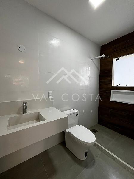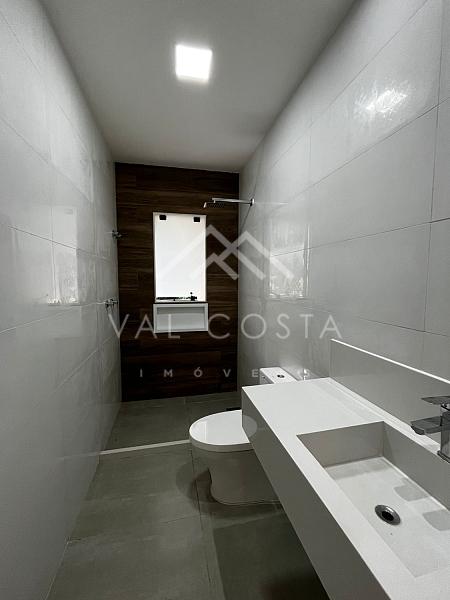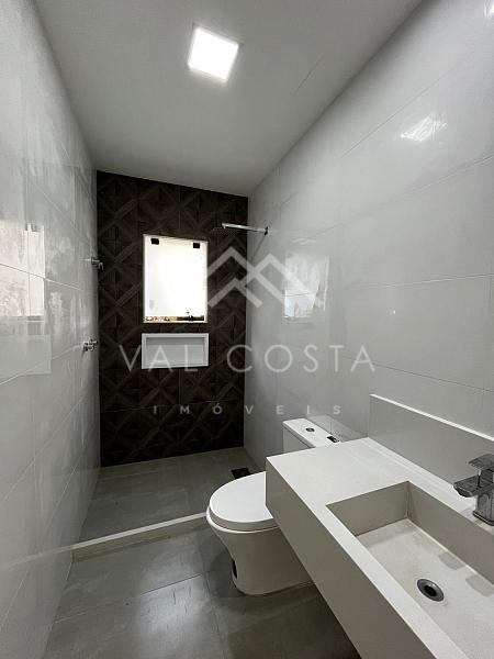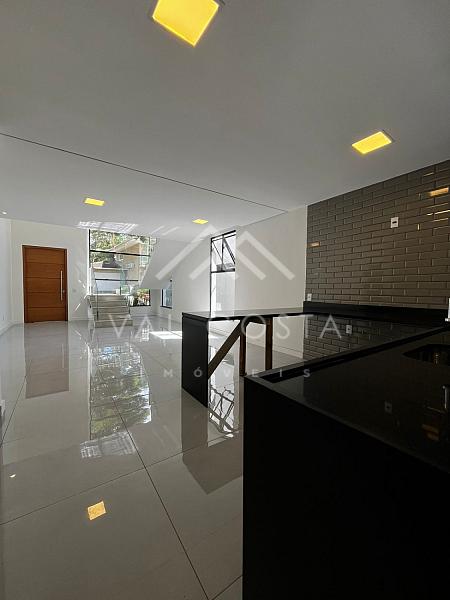 No primeiro pavimento, temos a sala dividida em 2 ambientes, cozinha americana, varanda gourmet com churrasqueira. Um quarto regular, banheiro social, área de serviço com entrada independente e garagem coberta para 2 carros.
