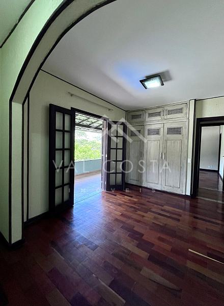 ✨ No primeiro pavimento, uma ampla sala com lareira que pode ser dividida em até três ambientes, corredor que leva à cozinha planejada, dois quartos com armários embutidos, banheiro social e uma suíte com banheiro reformado. Todos os quartos têm acesso direto à varanda, que garante iluminação natural, ventilação e uma vista agradável.