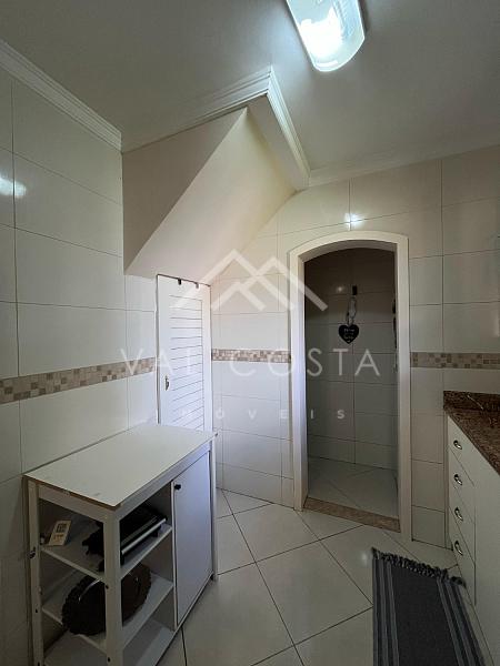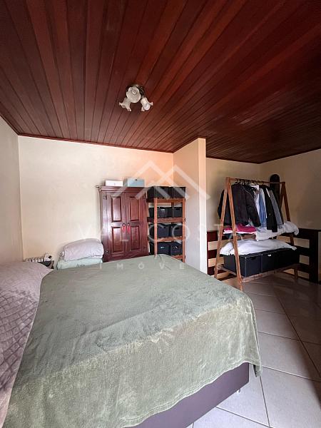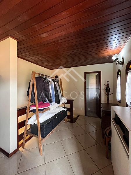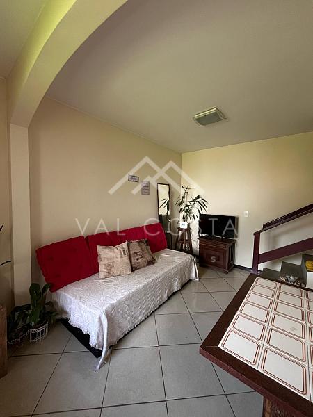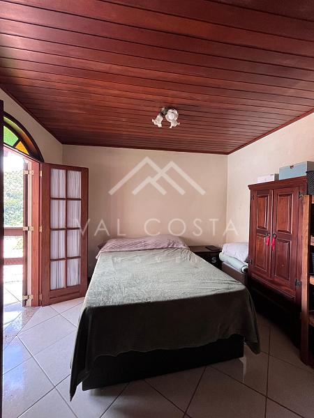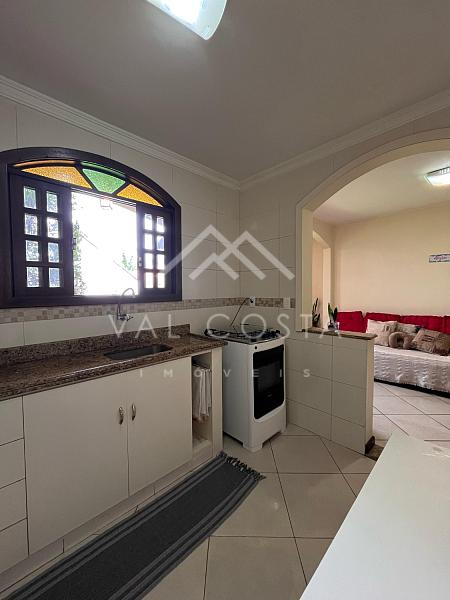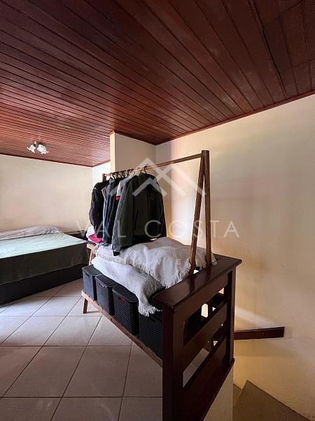 No primeiro pavimento, encontramos uma sala aconchegante, uma cozinha com armários e uma área de serviço funcional. Já no andar superior, a casa conta com uma ampla suíte, que se destaca pela extensa varanda com vista livre, ideal para momentos de descanso e contemplação.