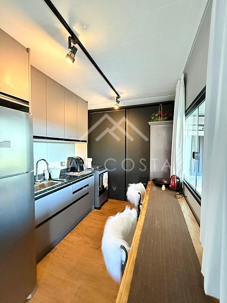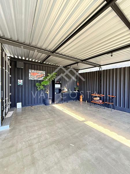 Com pegada urbana e cheia de personalidade, esta unidade foi criada a partir de um contêiner e oferece um charme único. O imóvel conta com um platô que pode ser usado como vaga de garagem ou, se preferir, como ponto de partida para ampliar sua área gourmet — quem sabe até incluir uma piscina no projeto.