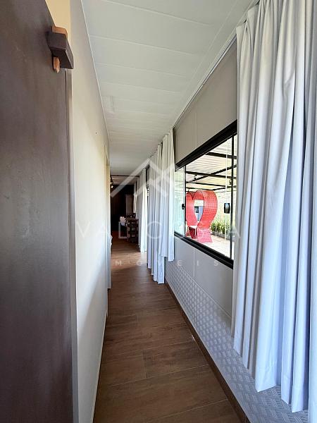 A varanda generosa é o convite perfeito pra deixar o tempo passar devagar, aproveitar a brisa e curtir a churrasqueira com tranquilidade.
